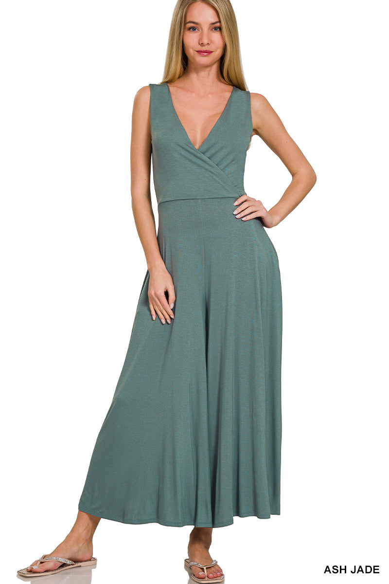 Surplice Neckline Sleeveless Jumpsuit – Soft Rayon Stretch, Pockets, and Flowy Fit | Katalina’s Boutique