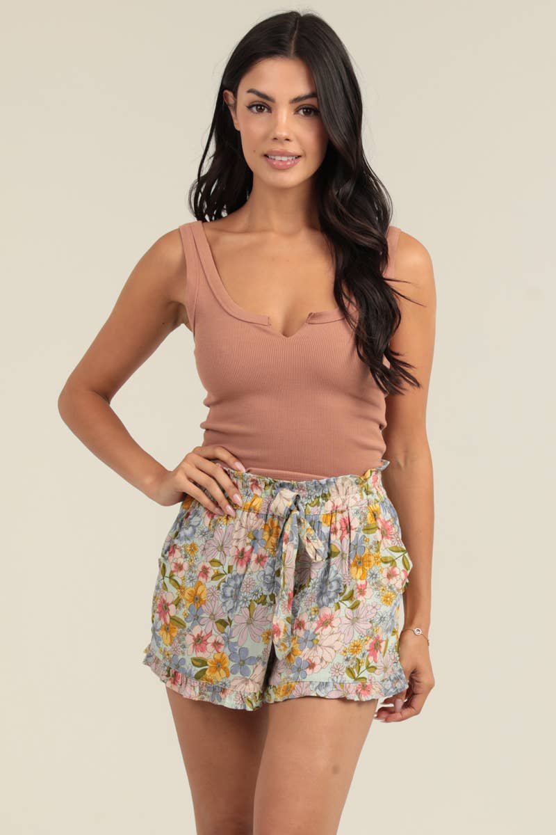 Meet your new “grab-and-go” spring and summer shorts. Our Floral Print Ruffle Hem Tie Waist Shorts are the perfect mix of comfy, cute, and effortlessly boho. Designed with a lightweight, flowy fabric and a soft elastic waistband, these shorts give you that relaxed vacation vibe—without ever leaving Capitola.