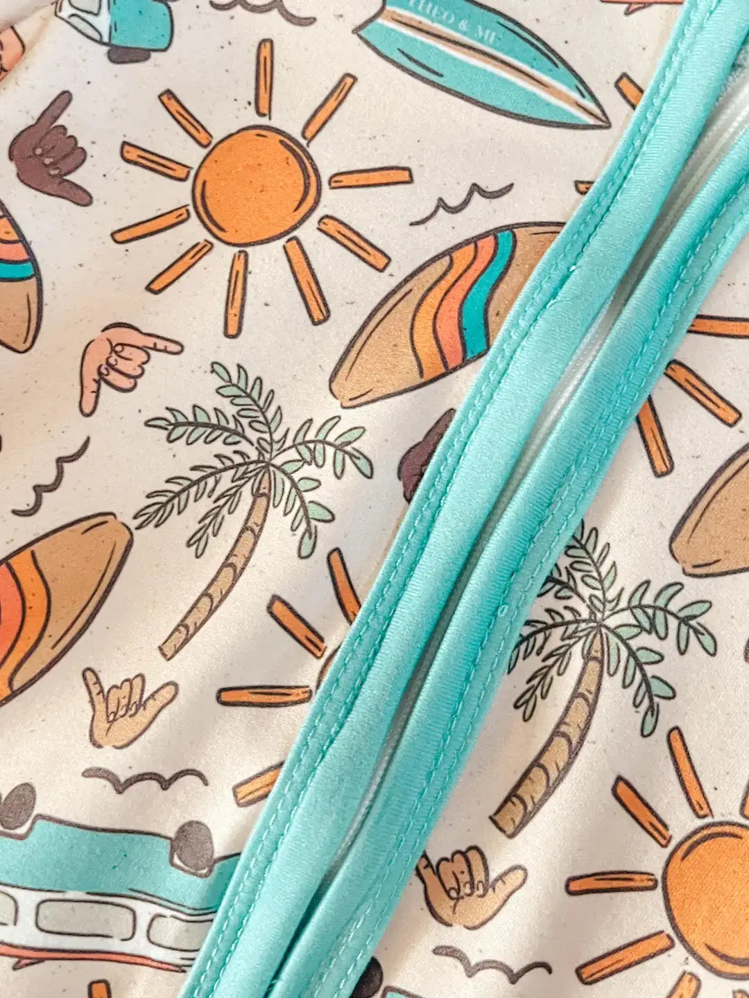 Featuring a lightweight, ultra-soft fabric and a smooth double zipper for easy diaper changes, this sleeper is equal parts practical and adorable. The playful surf-inspired print brings major beachy vibes—perfect for summer babies, coastal families, and baby shower gifting.