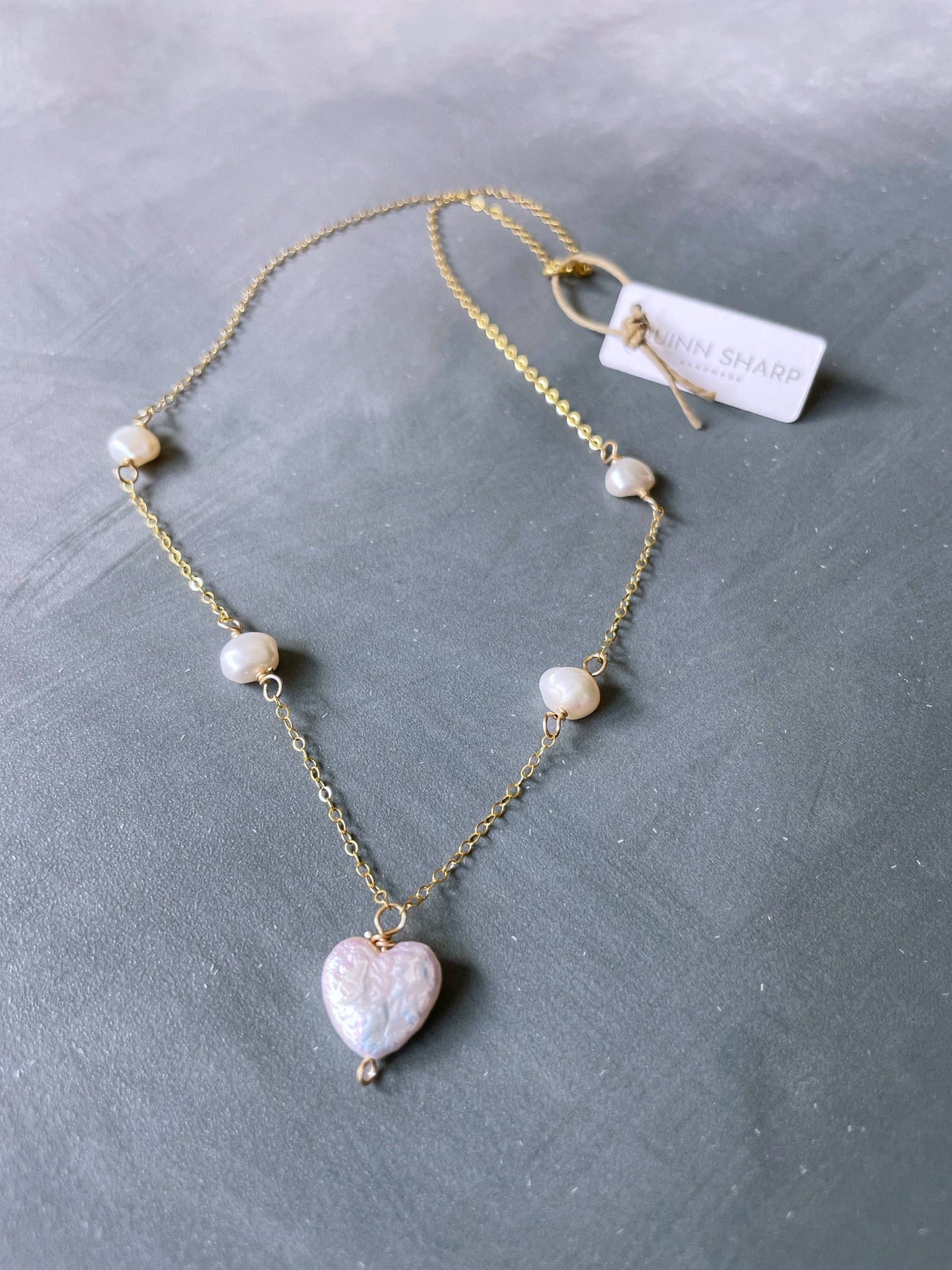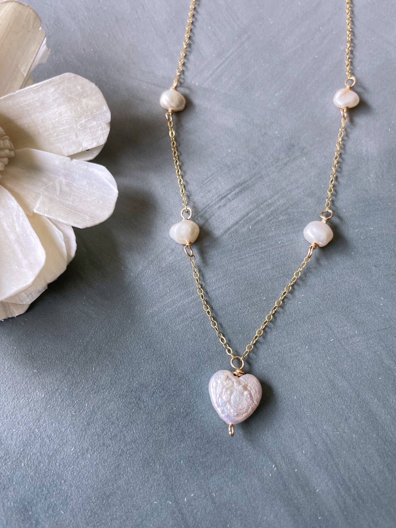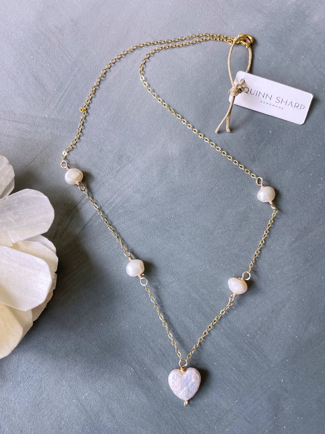 Freshwater Pearl Heart Necklace | 14kt Gold Filled, Sterling