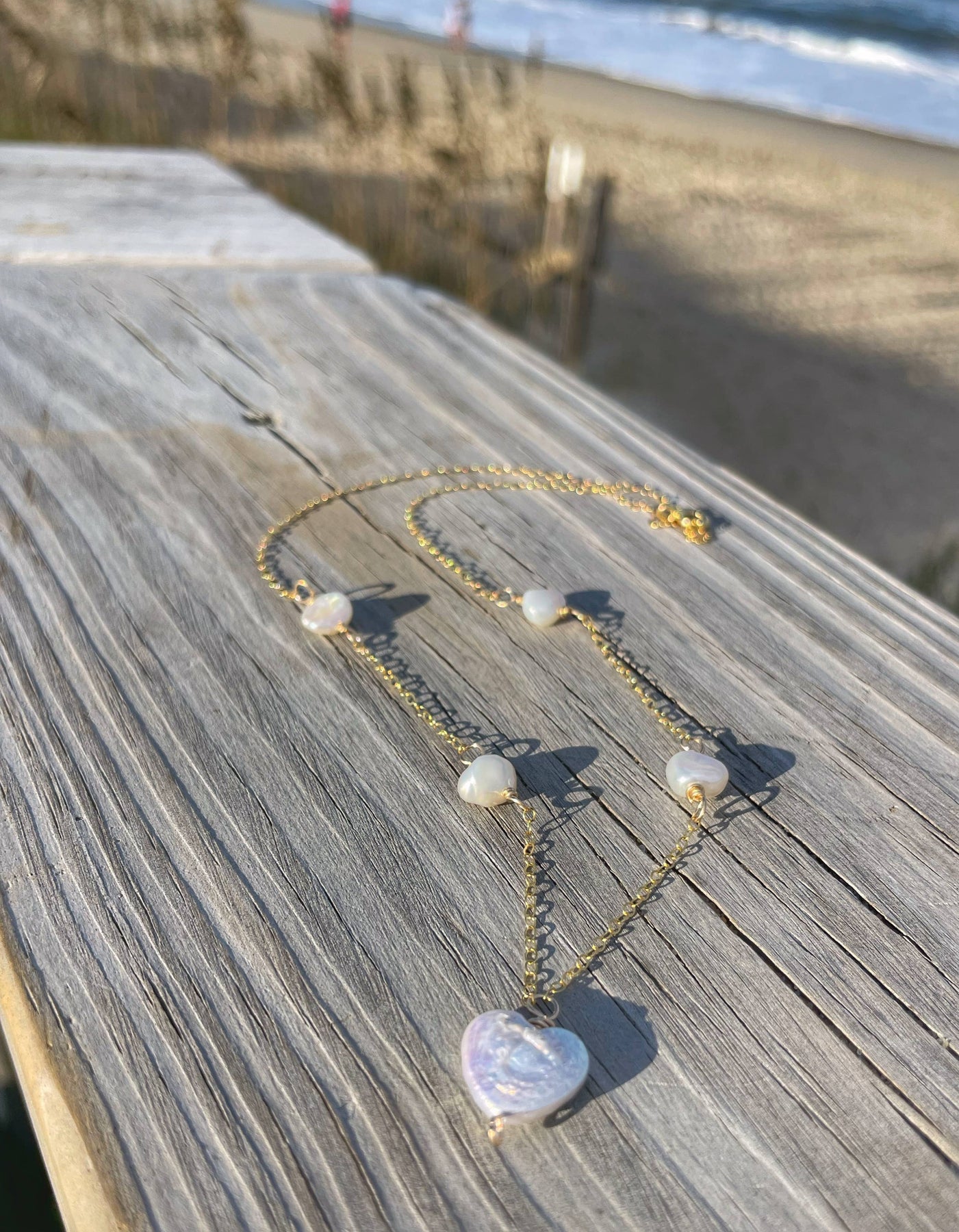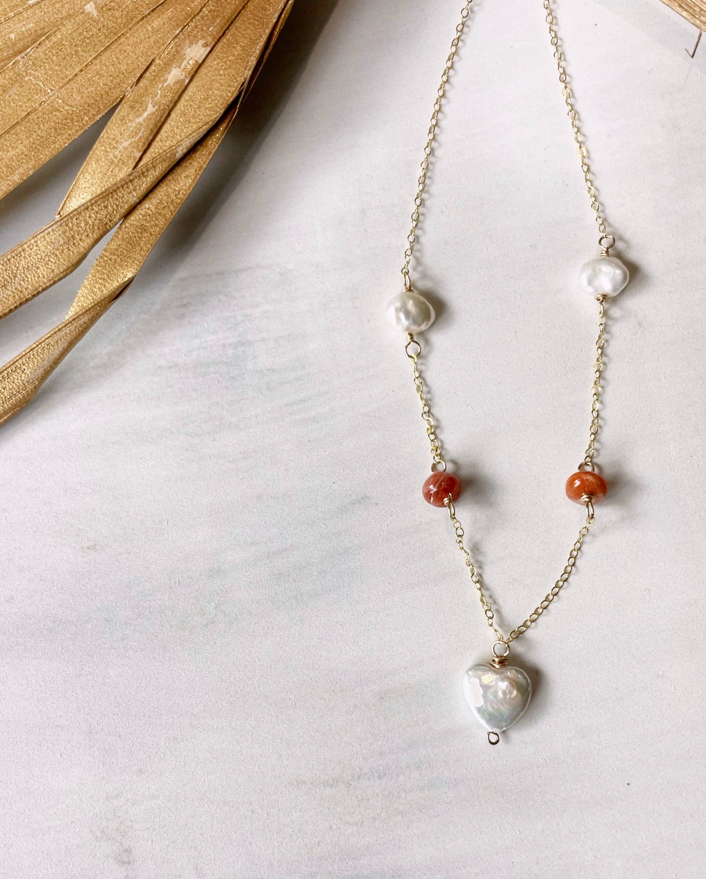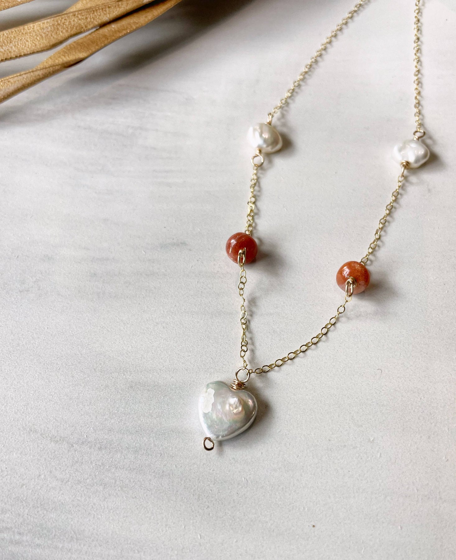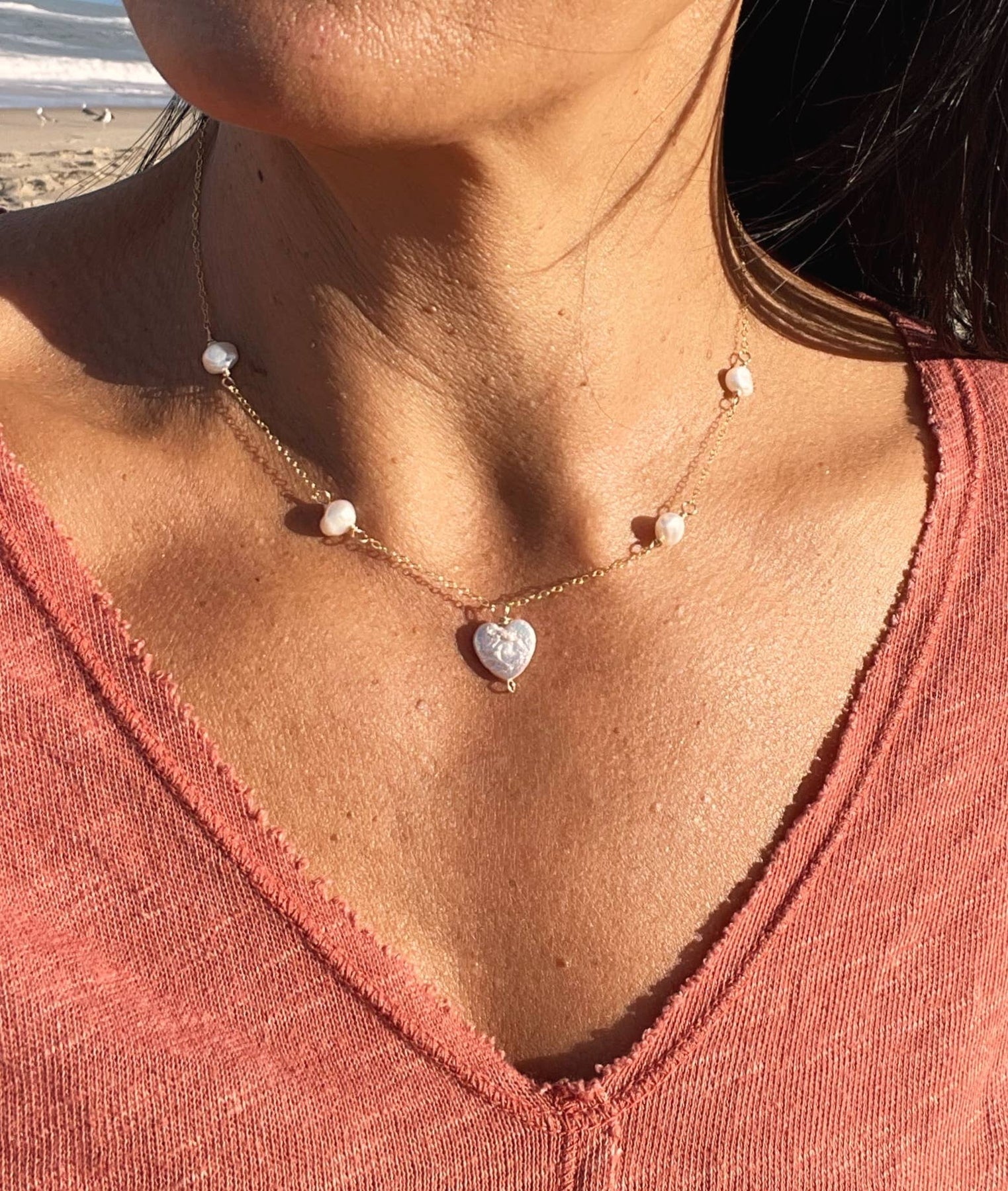 Freshwater Pearl Heart Necklace | 14kt Gold Filled, Sterling