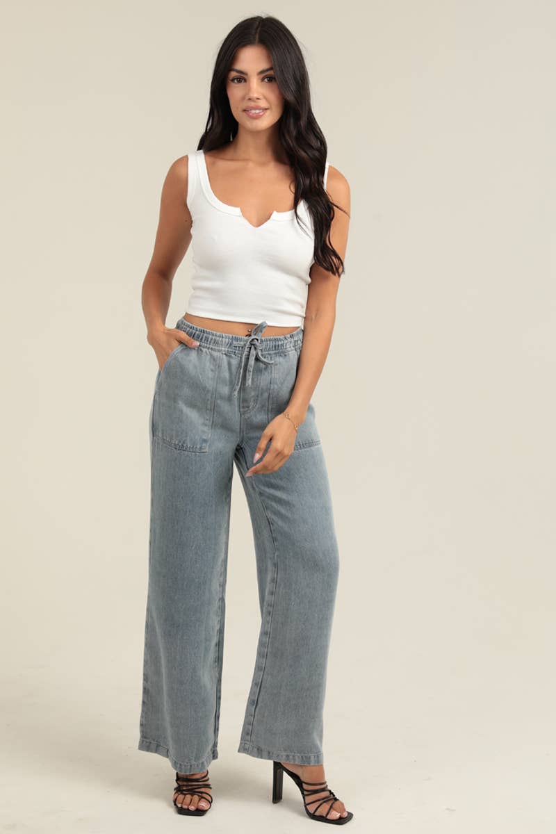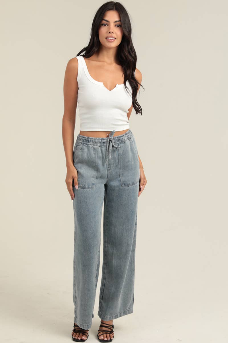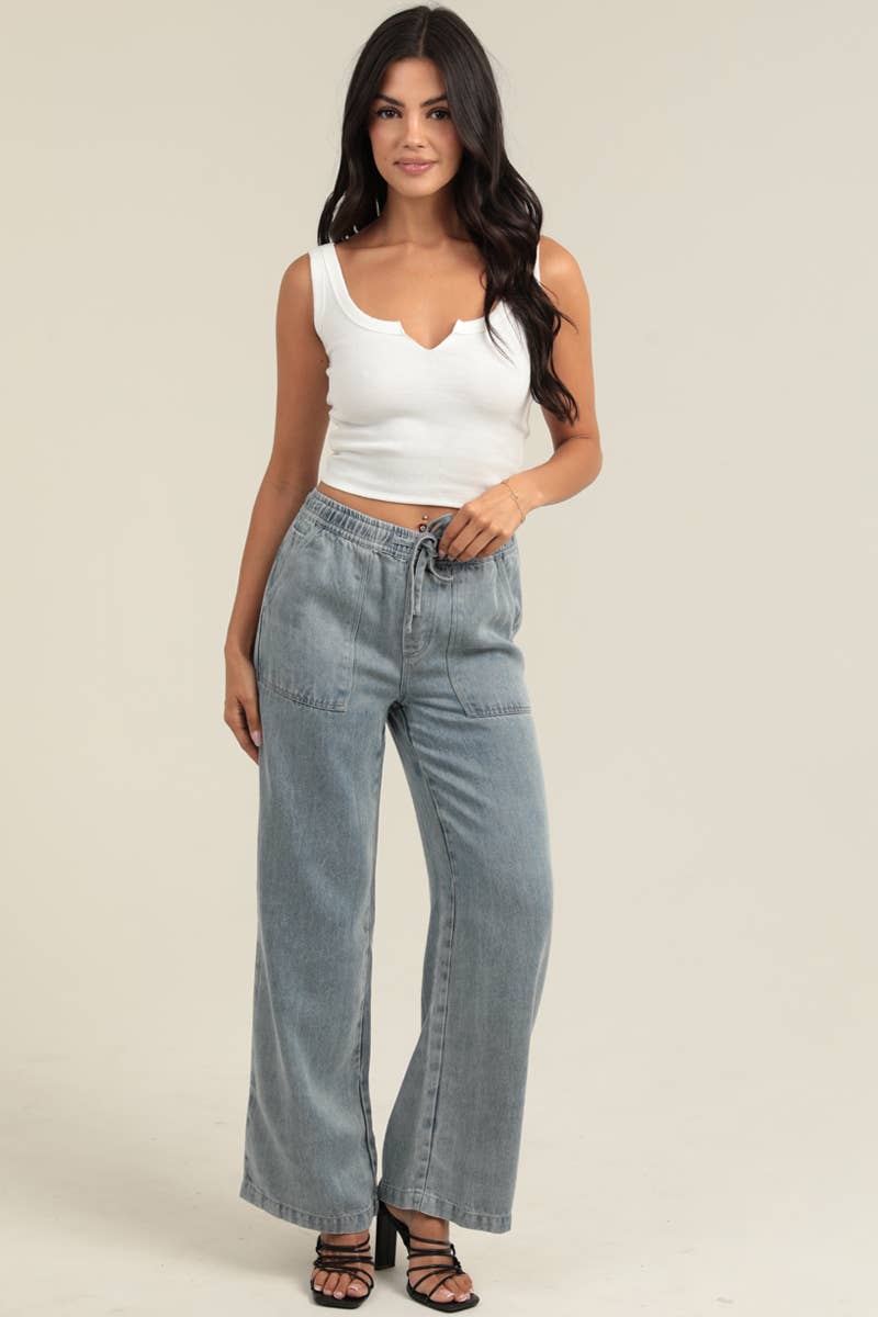 Meet the softest “denim” pants you will ever own. Our Tencel Wide Leg Pull-On Pants give you that effortless coastal vibe with the comfort of lounge pants and the polished look of jeans. Made from ultra-breathable Tencel, these light-wash straight-leg pants drape beautifully, move with you, and feel cool and lightweight for all-day wear.