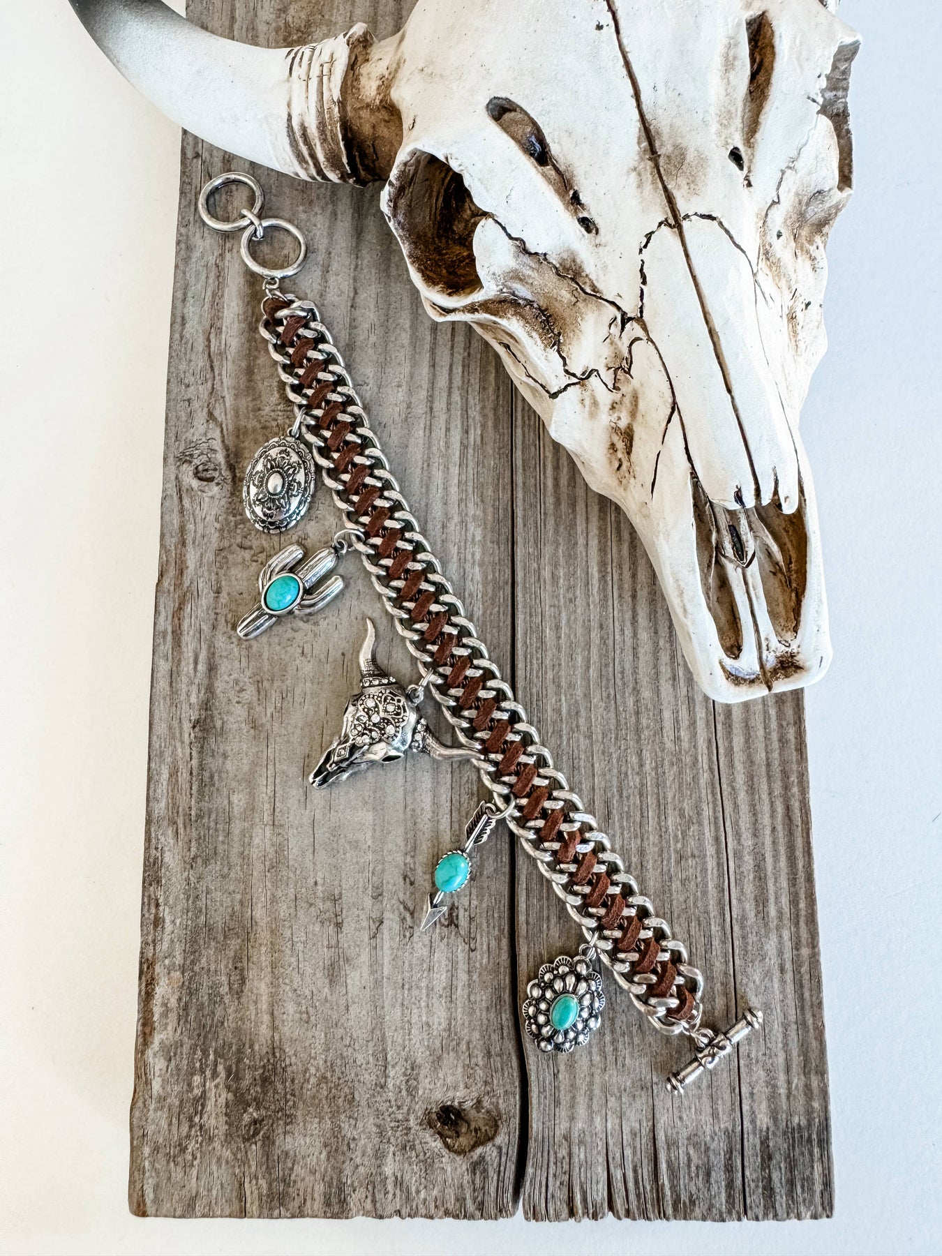 Western Charm Concho Bracelet - Cactus Arrow Conch Steer
