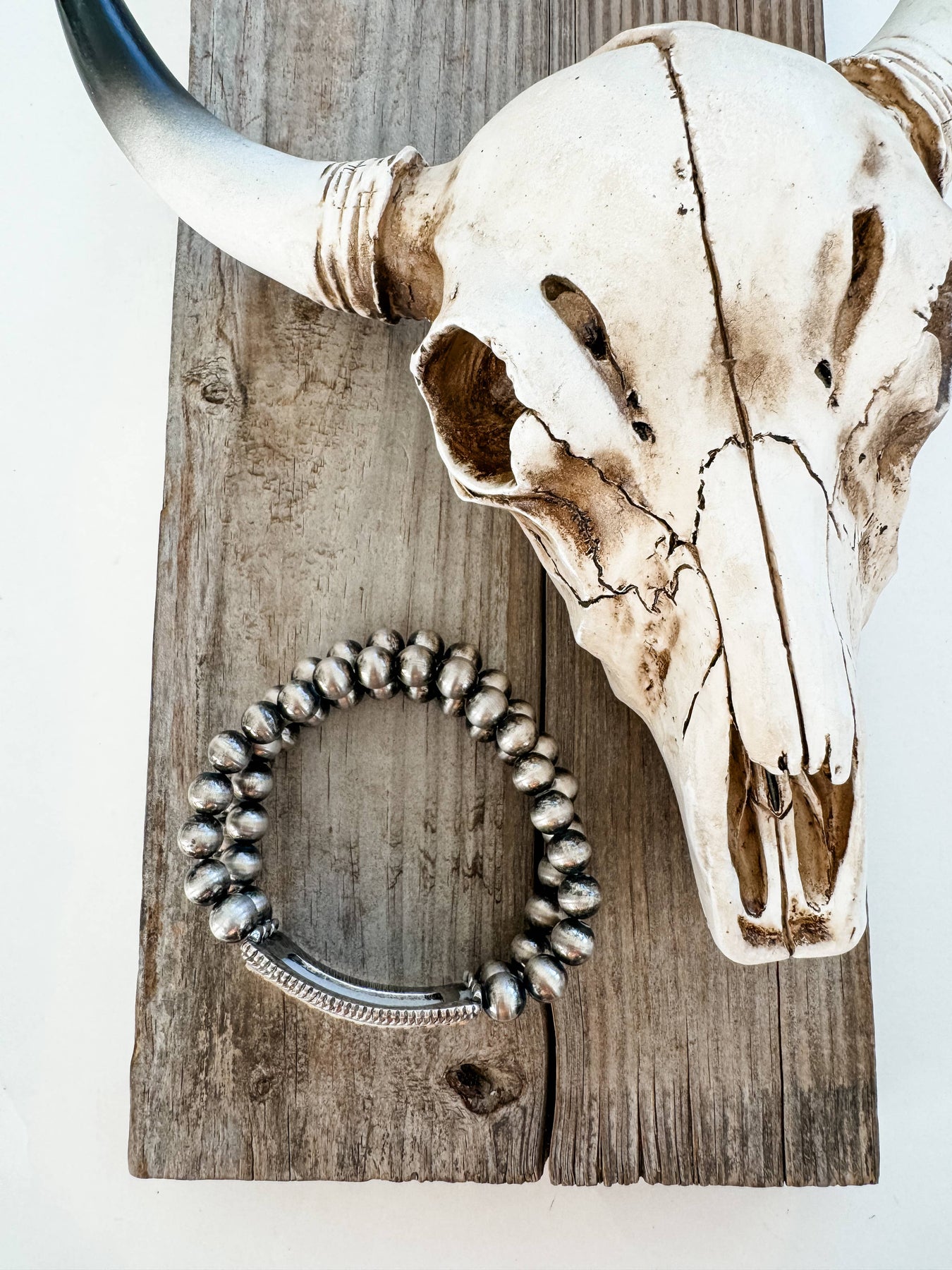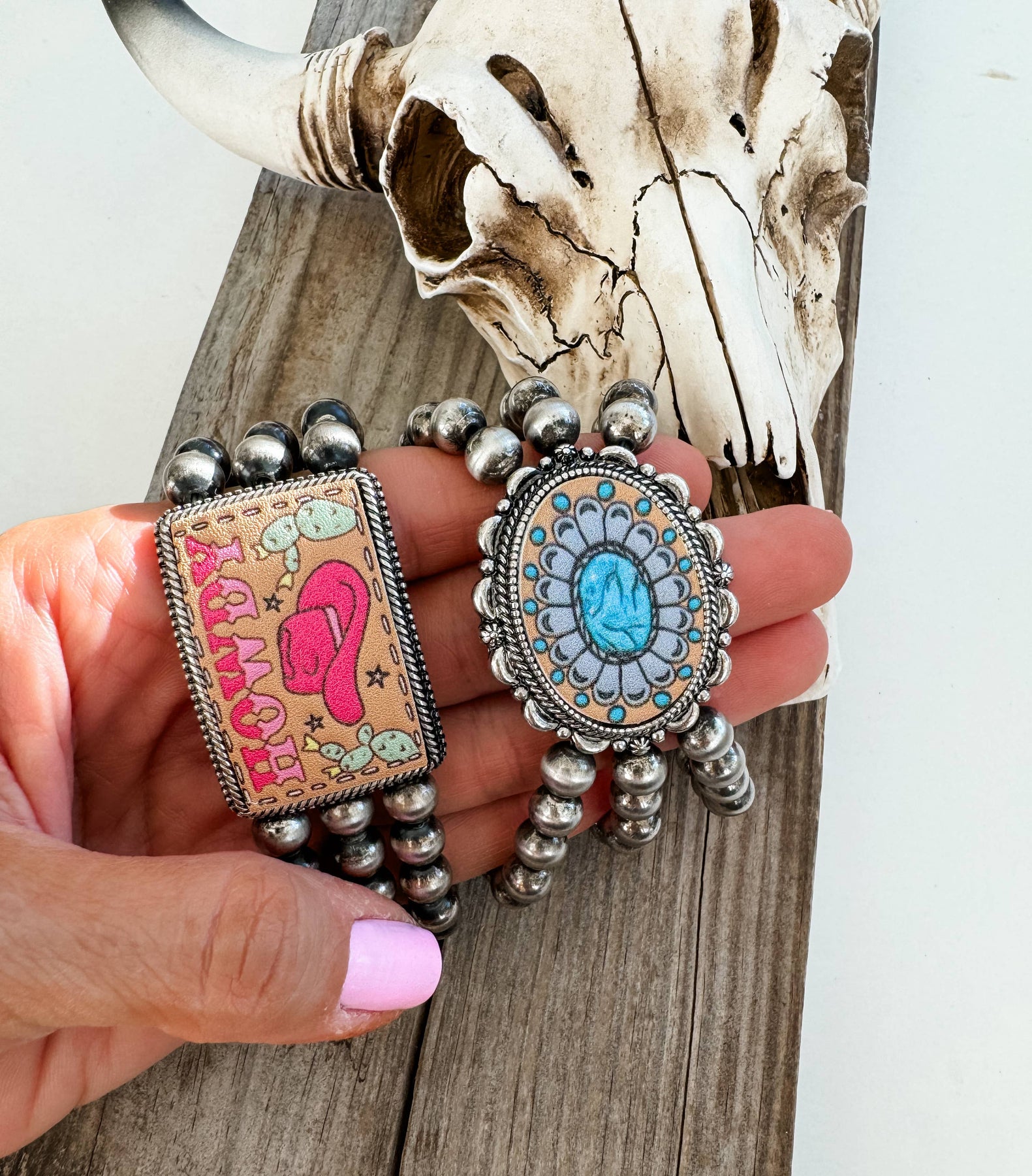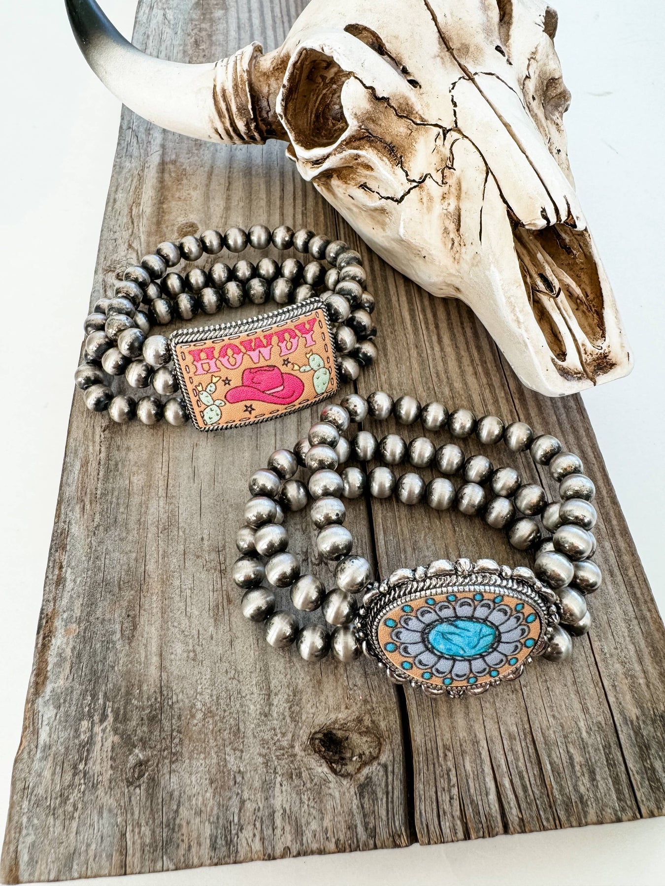 Elevate your wrist game with this charming Western Navajo-inspired stretch bracelet! Featuring a beautiful pearl stone pendant that captures authentic southwestern flair, this stackable beauty slides effortlessly onto your wrist thanks to its comfortable stretch band. At 2.375" in diameter, it's the perfect size to wear solo or layer with your favorite bracelets for a personalized look. Crafted with natural stone and lead-compliant materials, you can feel good about what you're wearing. Whether you're channeling your inner cowgirl or just love boho-chic vibes, this versatile piece adds instant character to any outfit. One bracelet per order—but honestly, you'll want to collect them all!
